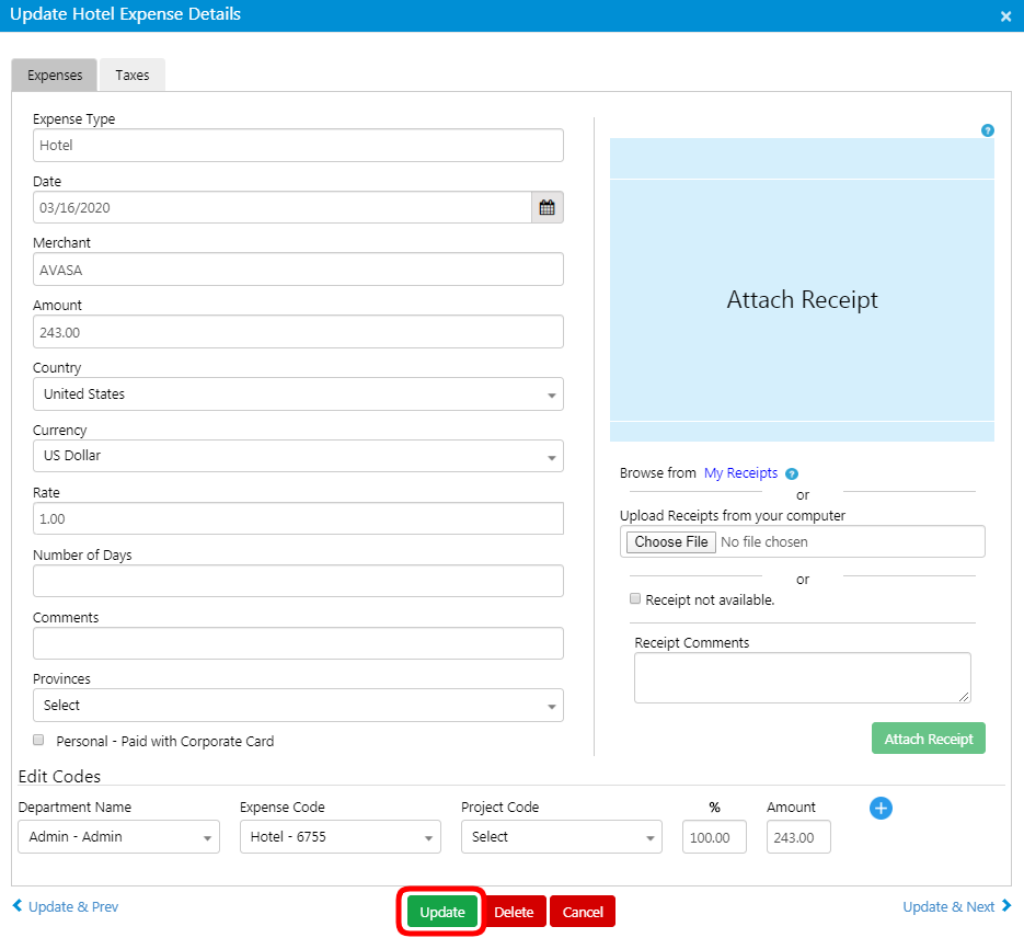 Once you create an expense report and add add line items to it, you can edit the details before submitting for approval.