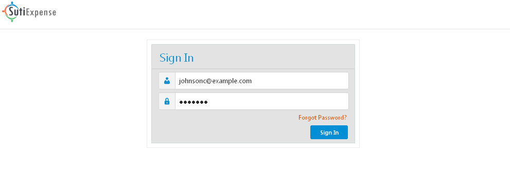 - On the SutiExpense login page, enter your registered SutiExpense username and password.
